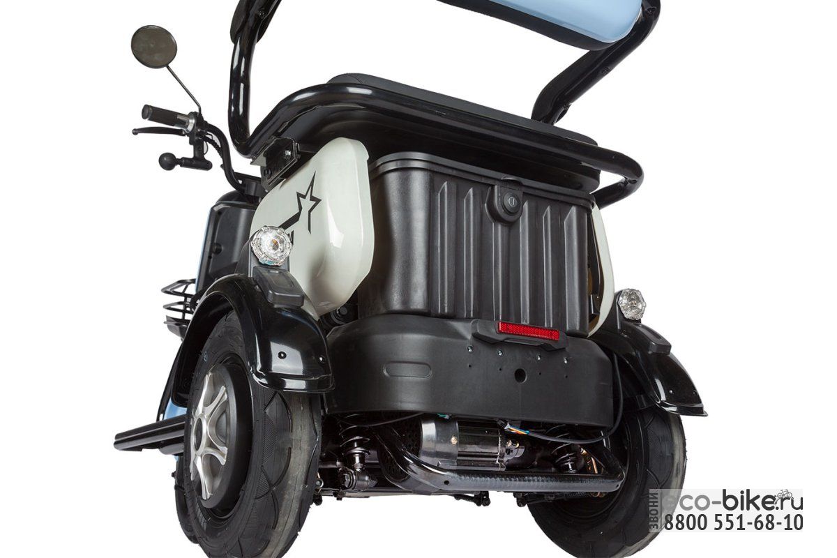 Металлическая корзина на руле и вместительный багажный отсек под пассажирским сиденьем позволяют перевозить покупки, личные вещи или рабочий инвентарь без лишних хлопот.