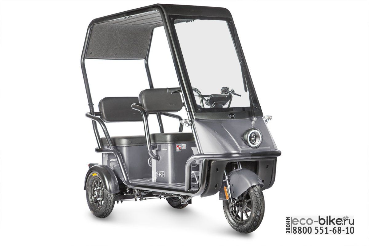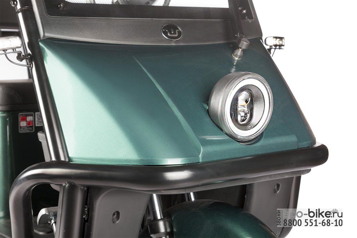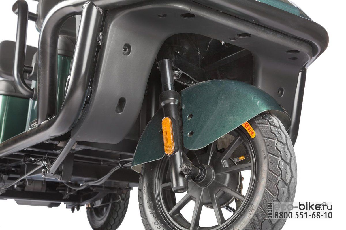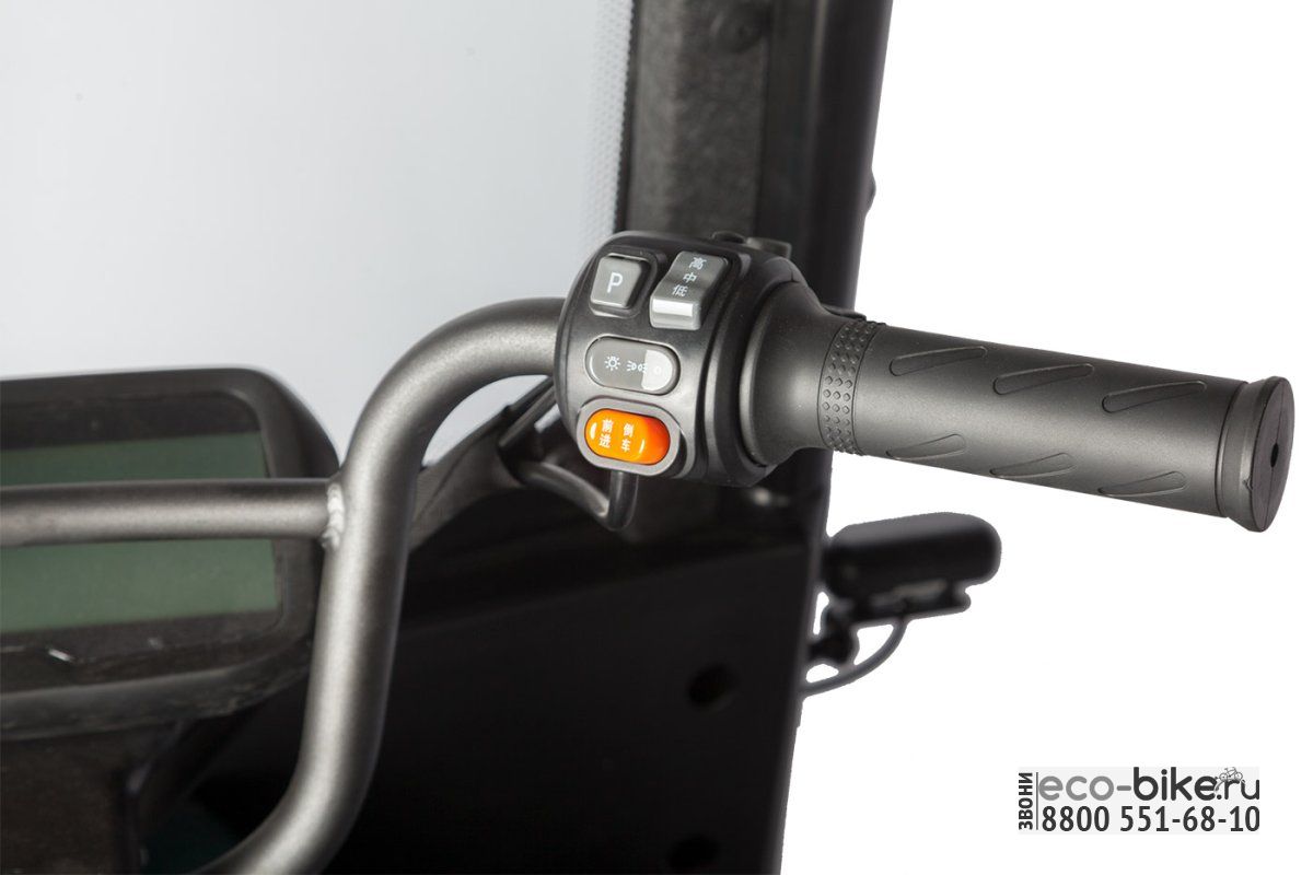 • Габариты: 2070х890х1680 мм — компактные размеры, которые позволяют легко маневрировать и парковать электрицикл даже в ограниченных пространствах.