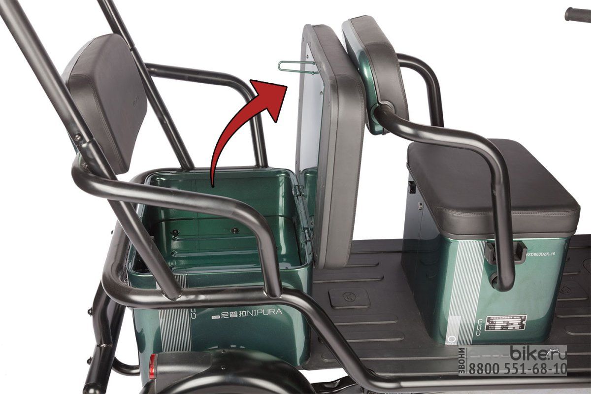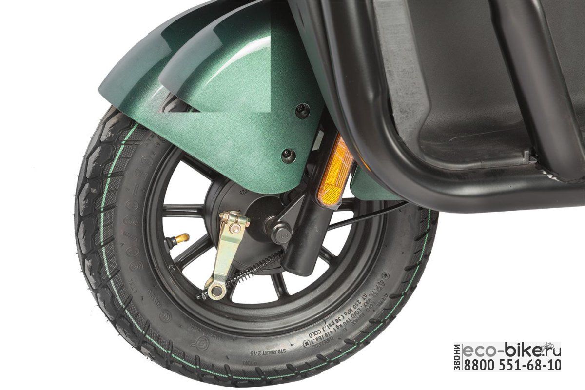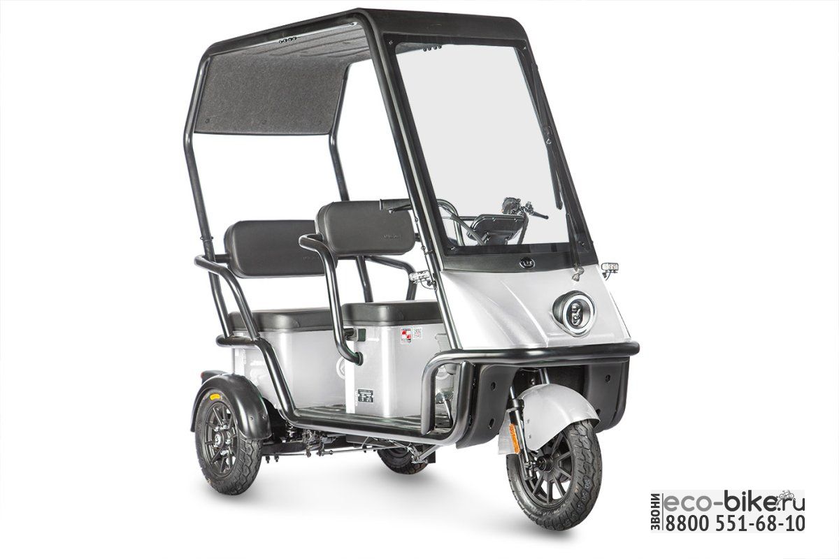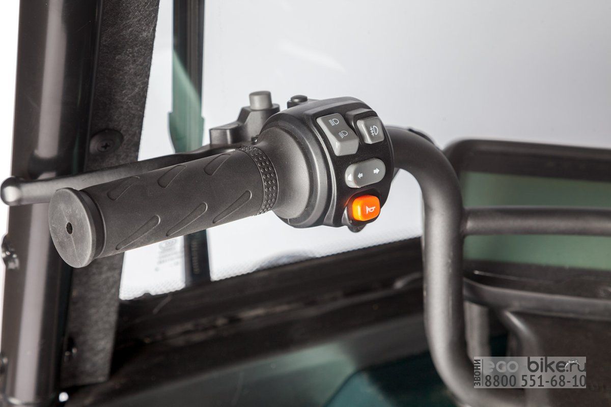 • Габариты: 2070х890х1680 мм — компактные размеры, которые позволяют легко маневрировать и парковать электрицикл даже в ограниченных пространствах.